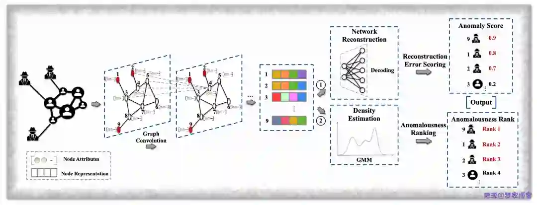 主要是将 GCN 图表示学习方法用于图中异常节点检测任务中。