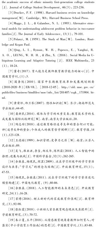 基金项目:教育部哲学社会科学研究重大课题“‘互联网+’教育体系研究”(16JZD043);教育部人文社会科学研究青年基金项目(17YJCZH116);北京师范大学教育学部学生科研基金项目“育人知识图谱支持下智能教师助手的设计与应用研究”(1812104)。