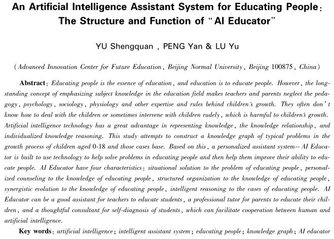 关键词:人工智能;育人助理;育人;知识图谱;AI好老师