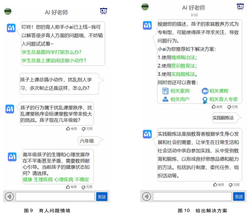 家庭是孩子的第一所学校。家庭教育是教育的起点和基点,家庭建设的基础,也是一切教育的基础(翟博,2016),家庭教育会显著影响孩子的价值观形成和行为表现。然而,不同家庭表现出不同的教育成效,受家长的教育理念、文化程度、家庭经济状况、社会导向等因素的限制。例如,受教育程度低的家长很难给孩子提供专业的育人指导,受教育程度高的家长往往有专业偏见,对孩子的问题进行不很全面的疏导。AI好老师则通过汇聚网络智慧,并借助技术手段进行无边界传播,可以为家长提供专业的指导,帮助他们了解孩子并对其进行正确的教育引导。