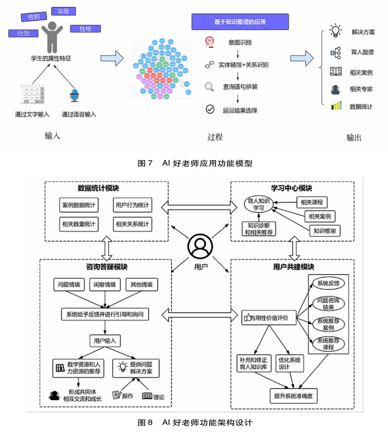 基于上述体系架构,AI好老师的应用功能模型主要包含三部分:用户输入、系统处理和系统输出(见图7)。