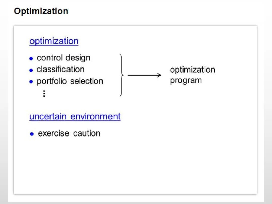 本文从风险与复杂度(Risk and Complexity)的新角度,介绍了场景优化理论ScenarioOptimization Theory的最新进展。场景(scenario)是指源于环境的观测样本,场景优化(scenario approach)指使用一组可用的观测样本进行优化的理论,通过数据驱动优化(data-driven optimization)的思路,解决含不确定性的随机优化和随机决策问题。场景优化理论具有坚实的数学基础,尝试回答了一些基本问题,例如,如何将经验纳入决策过程,以取得优化的结果?若遇到训练样本中从未见过的新样本,决策的执行效果如何?使用该理论和方法时,优化结果的鲁棒性如何?该理论自2005年由M.C. Campi教授(IEEEFellow, 因该贡献获得2008年IEEE CSSGeorge S. Axelby outstanding paper award)等人提出以来,不断取得新进展,已经广泛应用于机器学习、控制系统设计、系统识别等问题,以及医学分类、量化金融、航空运输系统、能源系统等应用领域。本讲座是M.C. Campi教授关于场景优化理论最新进展的介绍,更多相关研究可以访问https://marco-campi.unibs.it/?origin=publication_detail。