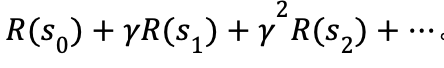 通常,我们还会定义另外一个参数——折扣因子(discount factor)。定义折扣因子之后,MDPs的总回报可以表示为: