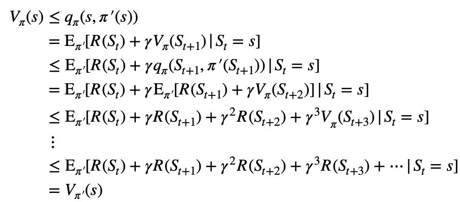 因此,在策略迭代中,每一次策略提升后,将得到一个更优的解。对于有限MDPs,策略的个数是有限的,在经过有限次的迭代之后,策略将收敛于最优解。