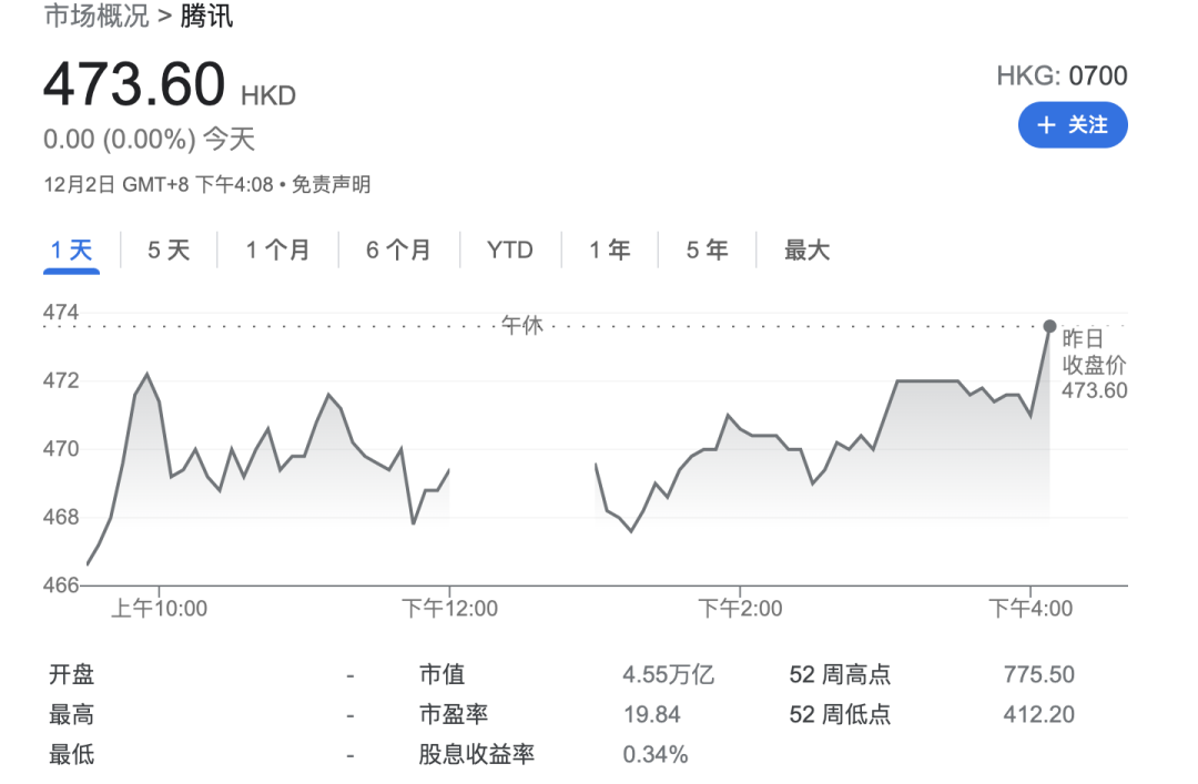 截至12月2日港股收盘,腾讯的股价为473.6港元/股,据此计算,此次奖励股票的总价值约为20.88亿港元。