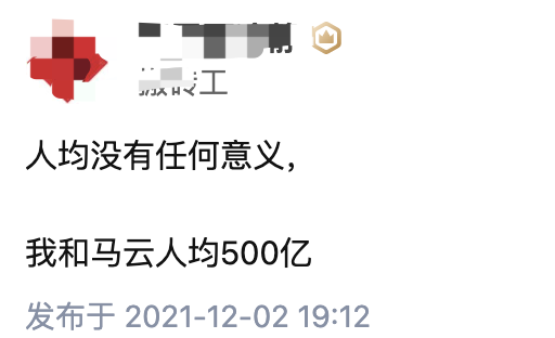 不过也有网友表示,「人均没有任何意义,我和马云人均500亿。」