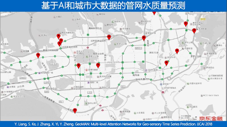 水质的预测涉及很多因素,包括管道本身的年龄和寿命、周边的情况、气象、人们用水的模式等因素,是一个很复杂的过程。基于人工智能算法,京东城市部署了管网水质预测系统来实时预测未来的管网水质,指导自来水工厂更科学地进行投氯消毒,保证居民饮用水质;及时发现水管健康状态,第一时间进行维护、修理,保证城市高效运转,进而给政府各项城市建设决策提供参考。