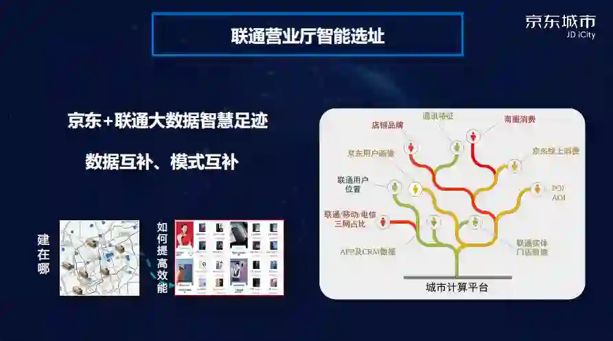 第一对联通线下营业厅进行选择,拿出哪些营业厅进行改造,实现服务最大化,未来收益最大化,我们把京东和联通的数据一起使用,在保证用户隐私和安全前提下,选出合理的营业厅进行改造,配置合适产品,把用户吸引到营业厅,从而转化流量促进营业厅的业务增长;同时这也是一个商业模式的合作,联通是线下模式,目的不是卖手机,是线下流量的入口,通过线下转为线上的流量。这是我们商业模式的融合,是无界零售很好的例子。智能城市特别需要后端的商业模式作为支撑,不能靠政府补贴。我们提出了一种基于人口覆盖率和学习排序选址方法,能为未来建新的营业厅提供选址方案,进而进行门店效能优化升级。