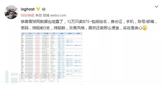 8月21日消息,网上流传称雪球网数据泄露,涉及12万人的数据,包含姓名,身份证,手机,账号/邮箱,密码,持股前3支,持股数,交易风格等,售价75美元。对此雪球官方发布《针对网传不实信息的声明》,称该网传图片为不实信息,雪球非常重视用户隐私,呼吁大家不要轻信谣言和传播谣言。