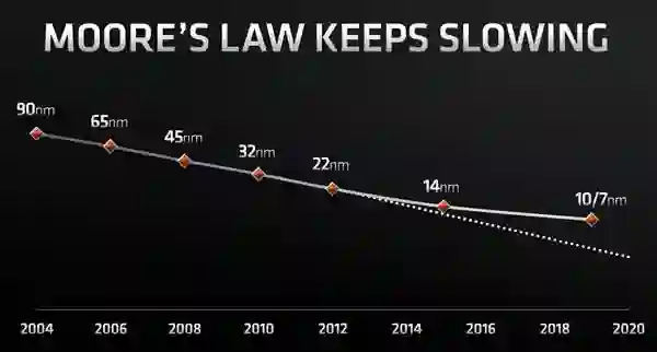 这也就意味着,Intel新制程的更新周期变成了,每36个月晶体管数量才会翻一倍。
