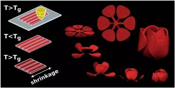 形状转换材料可以将复杂的3D形状与可精确调控的表面功能(如生物纳米图案和印刷电子器件)结合起来,得到研究工作者的高度关注。来自荷兰代尔夫特理工大学的Zadpoor教授及其团队发展了一种新颖的形状转换技术,只需要一台非专业的3D打印机和廉价现成的材料便可实现。