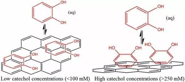 牛津大学的研究人员在这篇论文中展示了一种研究儿茶酚在石墨烯纳米片上吸附和解吸的新策略。相关的电化学和光谱研究发现,在低浓度下吸附行为符合Langmuir方程,而在高浓度下发生水平到垂直的相变。解吸动力学研究表明这是一个一级过程。这种方法有望用于表征纳米材料上的一系列分子。