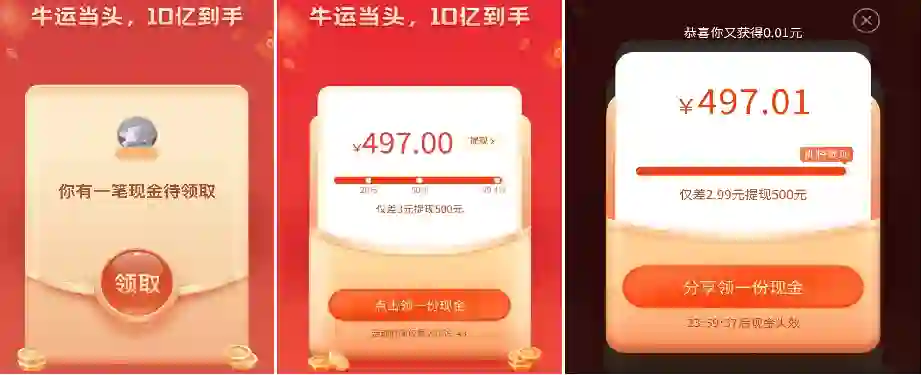 除了上面提到的“砍价免费拿”,在拼多多的首页上,还有多种让消费者“占便宜”的方式,像“多多赚大钱”、“天天领现金”等,都是借助消费者贪便宜的心理,利用社交裂变来发展平台用户。