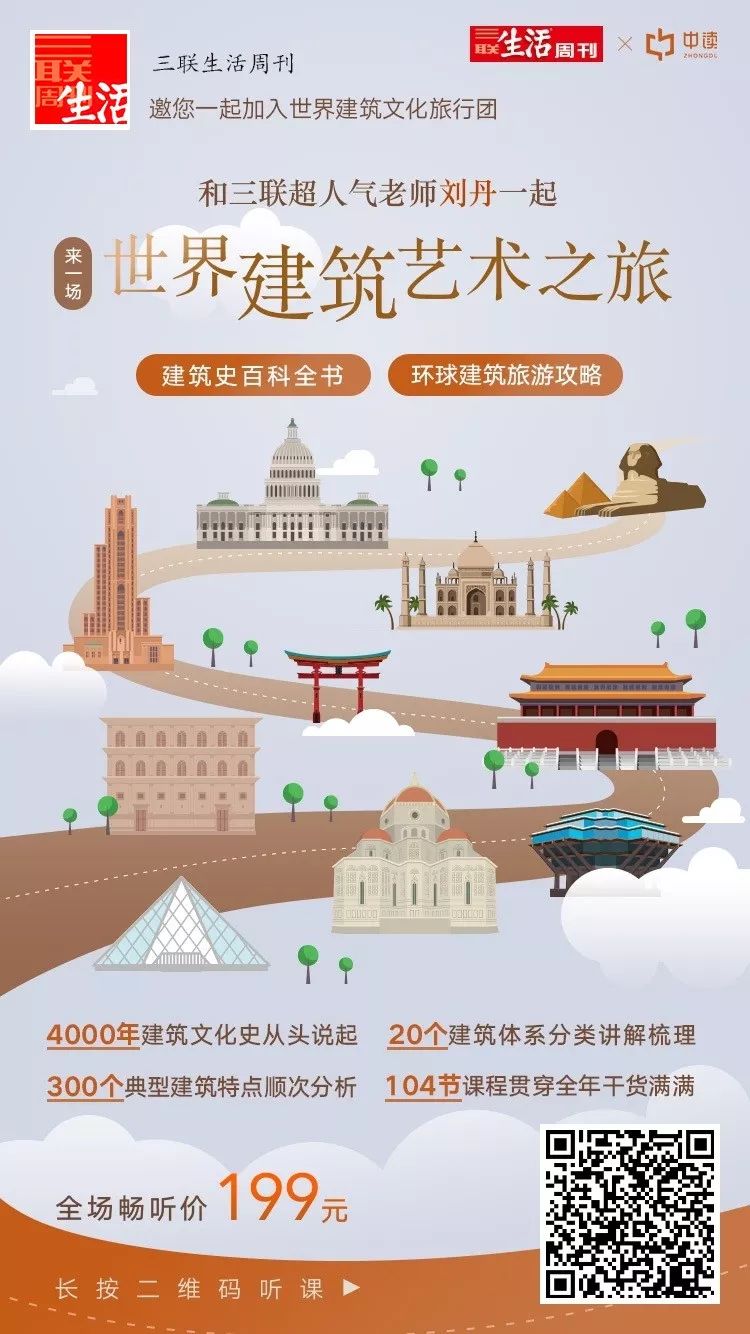 这次,三联中读邀请到了建筑学者刘丹教授,开设了《世界建筑艺术之旅》课程(👈点击订阅)。用一年的时间为大家讲解建筑背后的文化、历史与哲思,让你不做普通游客,不当文化小白,在旅途和生活中,学会如何欣赏建筑。
