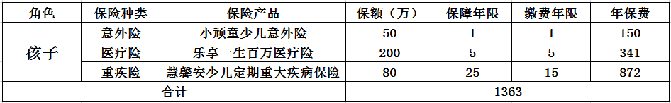 (小帮徐彬老师配置的保险方案 保费1362元)