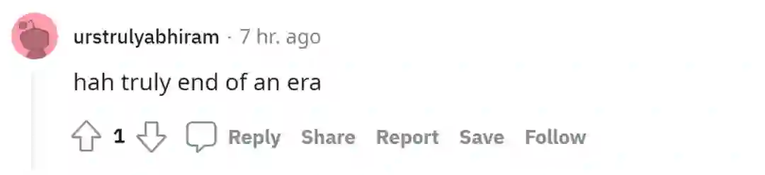 这个消息在 reddit 上也引起了一些网友的热议。有人甚至称「这是一个时代的终结」。