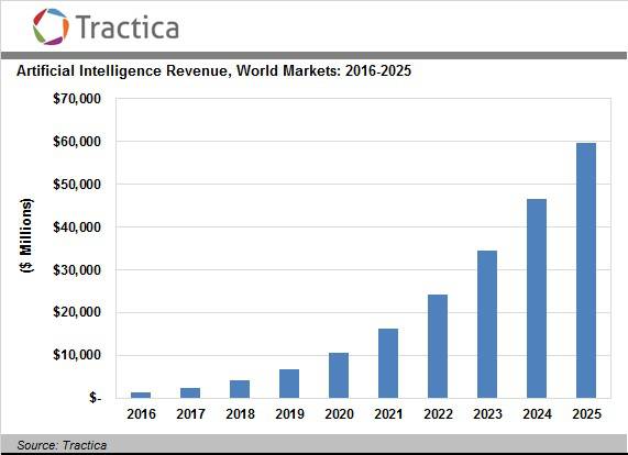 利用这款更强的深度学习与 AI 加速平台,微软公司最终将从云 AI 服务市场需求的持续增长当中获得巨大收益。具体来讲,AI、深度学习与机器学习等工作负载将极大提升云计算行业的整体规模。根据 Tractica 作出的预测,到 2025 年,人工智能软件的总体收入将可能达到 598 亿美元。