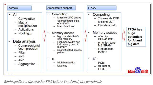谷歌公司目前是惟一一家使用 / 推广 ASIC 张量处理单元的厂商。据了解,Facebook、Amazon 以及其它互联网巨头并无意支持 ASIC TPU 在深度学习 / 数据中心领域的应用。很可能是考虑到 ASIC 糟糕的灵活性表现,中国搜索引擎巨头百度公司才选择跟随微软选择 FPGA 支撑自家云计算的脚步。具体来讲,百度公司的 256 核心 XPU 同样采用 FPGA。不过与微软的英特尔支持型 Brainwave 项目不同,百度公司决定采用 Xilinx 提供的 FPGA 方案。