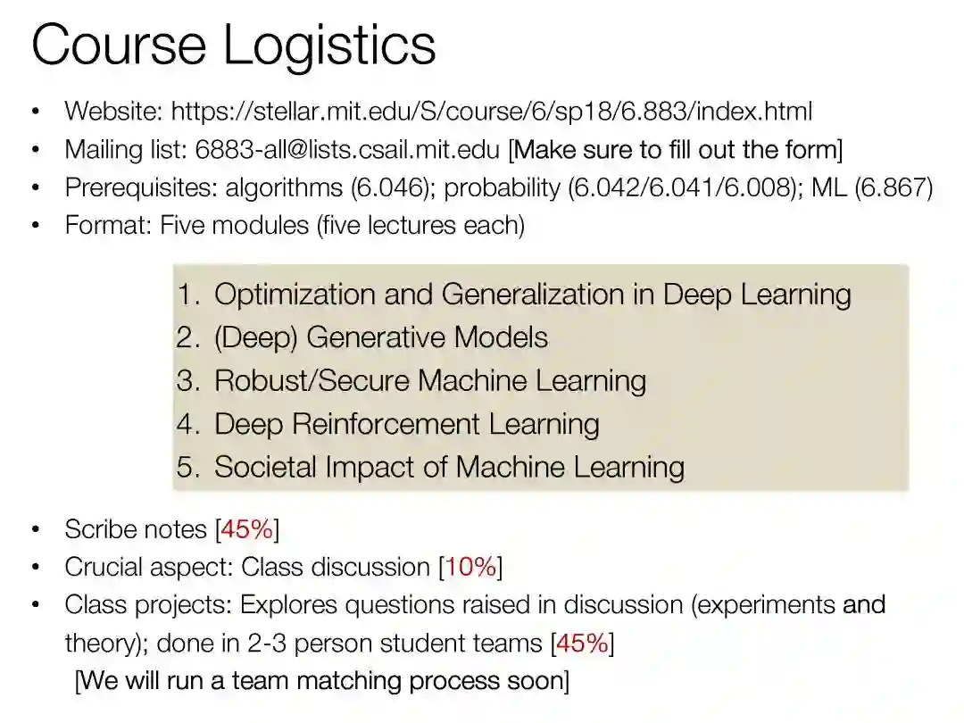 课程内容包括深度学习领域的一些最新进展,以及与此相关的最优化、学习理论、统计学和博弈论等主题。所提供的材料将为随后的课堂讨论提供一个起点,讨论所提出的最新技术的优缺点。