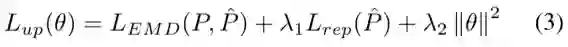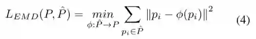 其中第一个项是上采样点集和 groundtruth 密集点云之间的地球移动距离 EMD(Earth Mover Distance):