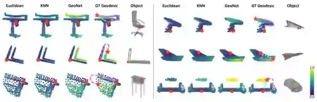 本文提出 GeoNet,一种全新的深度学习架构,可学习点云基于测地空间的拓扑学结构。其训练过程在 groundtruth 测地距离的监督之下进行,因此已学习的表示可反映出点云所潜在表征的网格曲面特征。