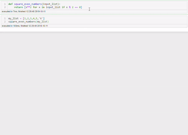 我们有一个函数,它以列表为输入,并对所有的偶数取平方值。