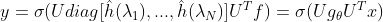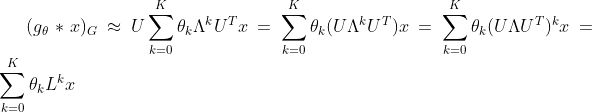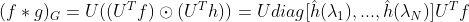 由图上的傅里叶变换公式我们可以得到卷积核h在图f上的卷积公式: