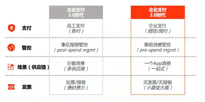 我们定位是2.0的企业钱包,通过聚合企业消费场景,再加上支付和费控的模块,为企业节省成本,让报销环节尽量简化。