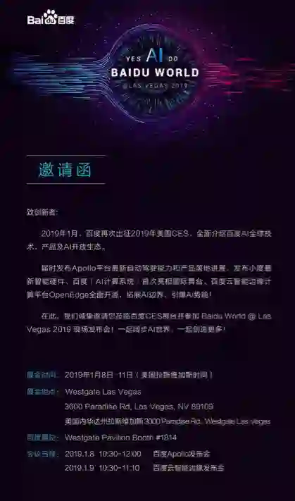 今年的CES——2019年1月8日,百度将发布Apollo3.5平台最新自动驾驶能力和产品的落地进展,不知新的Apoll平台将较于以往有什么不一样的地方。