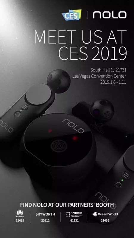 NOLO是一家在移动VR/AR交互领域处于全球领先地位的科技公司,具有完全自主知识产权的声光电混合空间定位核心技术PolarTraq。在2017年的CES展会上展出了其沉浸式VR/AR交互设备「NOLO CV1」;2018年3月,发布了其沉浸式移动VR应用平台NOLO HOME,预计也将会自此次展会上展出。