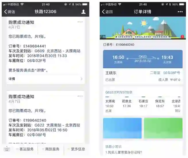 比如,通过“铁路12306”微信公众号推送的行程通知,能为旅客提供形式更丰富的出行信息和服务。据铁路部门反馈,截止目前,上线半年累计通知用户超过5000万人次,让旅客出行更方便;