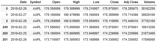 下面我们用苹果(代号 AAPL)一年的股票数据举例。