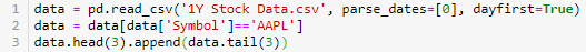 vol = getDailyVol( data )vol.head(3).append(vol.tail(3))