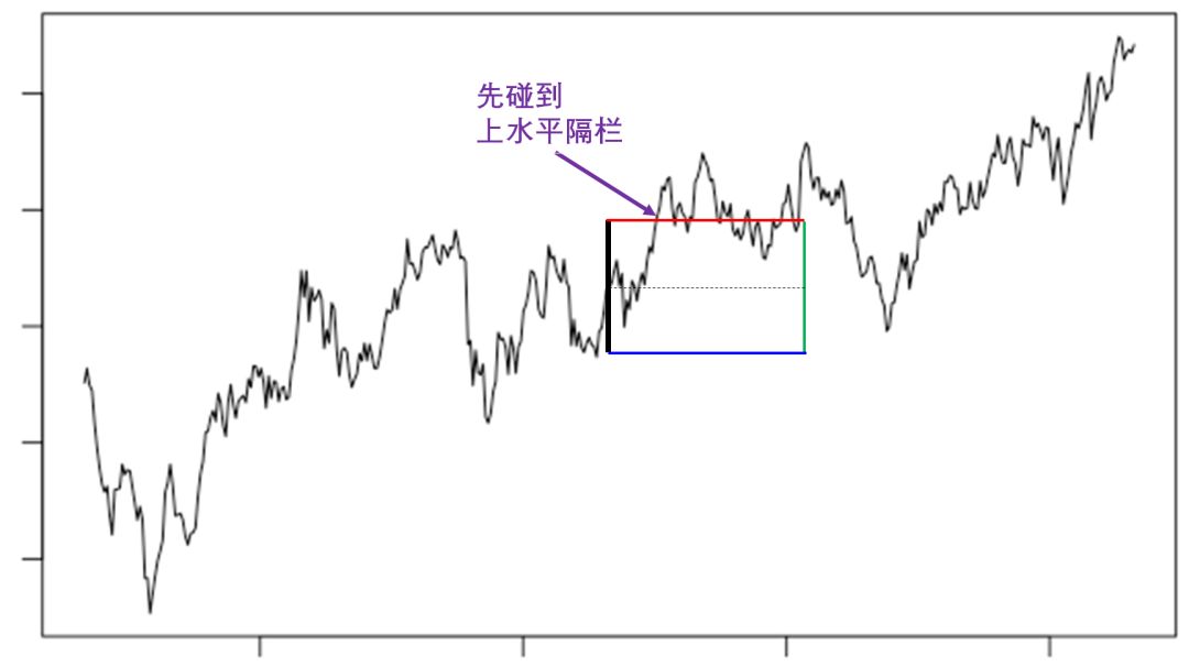 这显然是一个路径依赖的方法,因为我们需要确定在整个时间区间内三个隔栏是否在某一刻被触及。