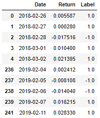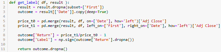 该函数计算出根据每个窗口的收益正负带标住 +1 或者 -1。