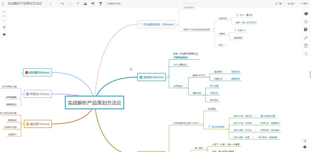 所以在推荐一款免费的在线脑图,百度脑图,完全免费,只是近两年这块百度对于这块资源投入越来越少,所以会出现一些加载资源慢,排版交错类的Bug。但画一些小型不复杂的脑图时挺好用的。