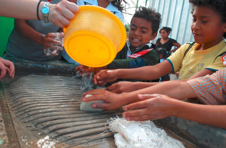 因为太穷了,学校和家里都没有肥皂给他们洗手