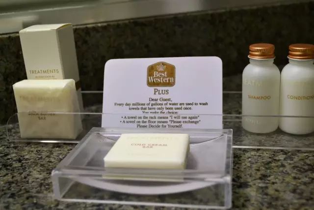 ▲加入回收计划的酒店会在房间内放置标语和信息卡