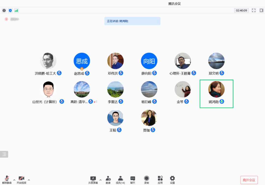 随后,专委会主任姚鸿勋教授主持了专委会常务委员选举、新增委员选举和专委会logo投票及意见汇总。专委会在选举前进行了充分动员和广泛宣传,本次选举共收到14位委员参选常委委员,12位委员候选以及6个logo候选。常委委员选举是本次会议的一个重点内容,为便于大家深入了解,每位常委候选人进行了一分钟左右的介绍,包括个人基本情况、对学会和专委会的贡献以及当选后的工作设想等。经无记名在线投票,邓伟洪教授、高跃副教授、洪晓鹏教授、金琴教授、李雷达教授、山世光研究员、王甦菁副研究员、王韬研究员、杨巨峰教授和郑文明教授等10位情感计算与理解领域的专家当选专委会第一届常委。加上专委会主任姚鸿勋教授、副主任薛向阳教授、梅涛博士、贾珈副教授和秘书长赵思成博士,第一届常委一共15人。来自不同高校和企业的12位新增委员候选人也进行了简短的自我介绍。经无记名在线投票,所有候选人成功当选专委会委员。