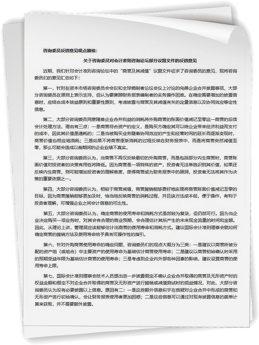 简单而言就是,该委员会的大部分咨询委员认为,应该将商誉减值改为商誉摊销。