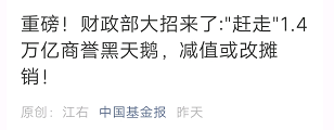 由于这条信息发布者的特殊身份,昨天晚些时候,市场人士终于琢磨出味道来,从而引发了一场关于商誉减值的大讨论。不少人认为,这是中国财政部在为解决商誉减值问题做试探,随后各大证券报集体发声分析此事,而部分官媒则直截了当地将此举理解为财政部“开大招”。