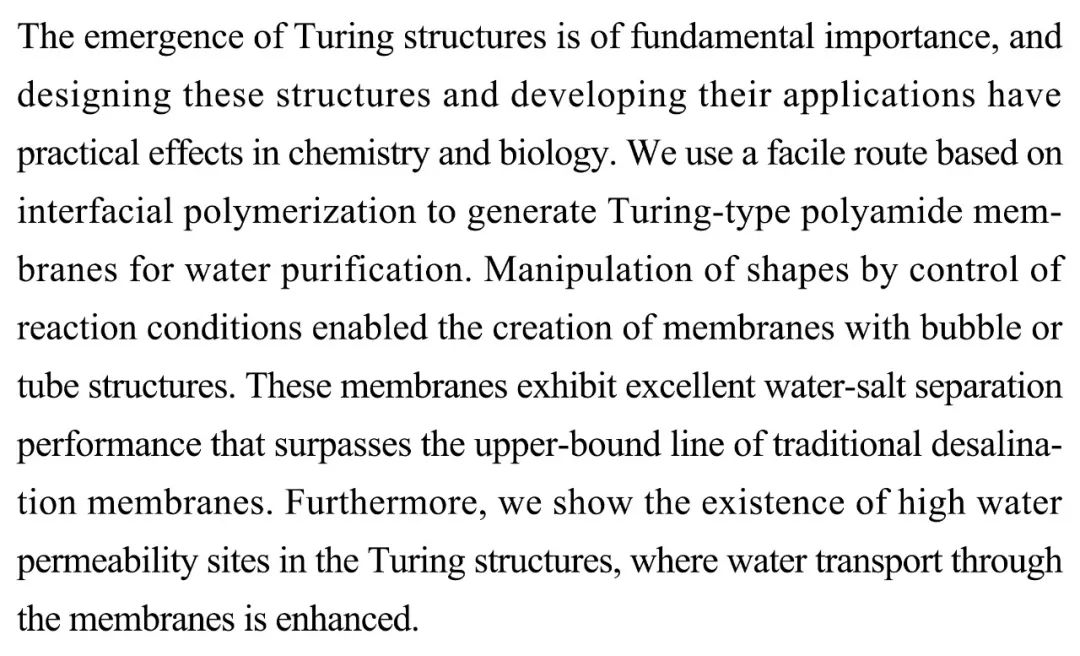 浙江大学张林教授课题组:首次做出具有纳米尺度图灵结构的水净化聚酰胺膜