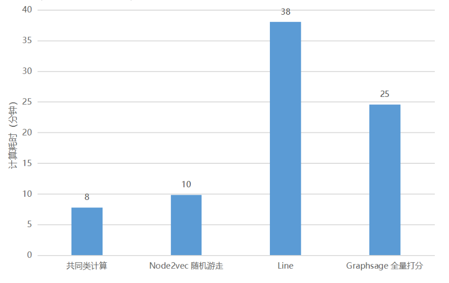 下图给出了 Plato 在腾讯数据量级下的共同类计算、Node2Vec、LINE、GraphSage 等典型业务算法的性能(受限于篇幅原因,其他算法性能不再赘述,性能和上述算法类似)。