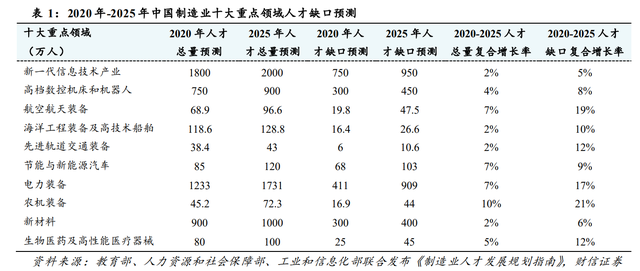 除了传统工厂和普工招聘,缺人之痛也存在于高端制造领域。在《中国制造2025》提出7年后的今天,高端制造领域的高级技能型人才也面临短缺,进一步拖缓了传统制造业的转型脚步。根据教育部、人社部、工信部联合发布的《制造业人才发展规划指南》,代表中国制造未来往泛高端制造转型的十大领域人才缺口,将从2020年的1900万涨至3000万,年均复合增长率超过10%。