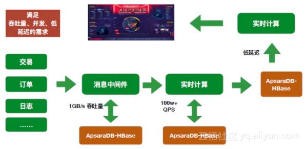 这是阿里内部非常具有代表性的场景。高吞吐、高并发、低延迟的访问需求下,对HBase应用提出了很高的要求。