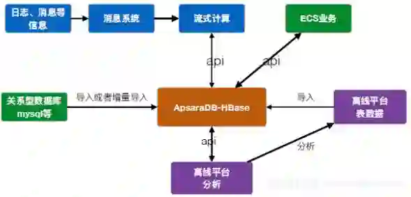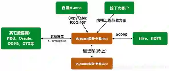 作为一款数据库类产品,ApsaraDB HBase与各个数据源间保持着非常通透的关系,方便数据导入导出。