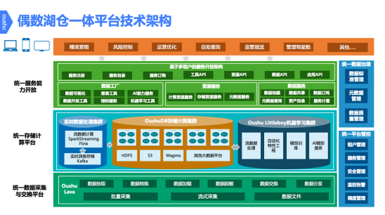 偶数科技的湖仓一体方案采用了Omega全实时数据处理架构,其能够为用户提供批流一体处理能力,基于目前全球最快的新一代分析型数据库引擎OushuDB,可以实现PB级大数据交互式查询;将计算与存储分离,让计算集群之间数据可以方便共享;弹性扩展架构,可以扩张到上千节点;其支持Hadoop生态,用户可以快速实现扩展;数据管理平台Lava可以实现统一数据资产管理、统一数据标准、统一数据服务、统一机器学习及深度学习建模平台……这些技术特点使得金融平台能够更加快速便捷的接入湖仓一体解决方案。