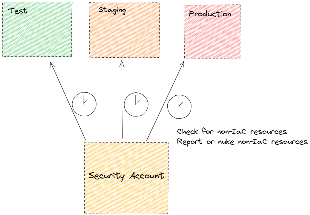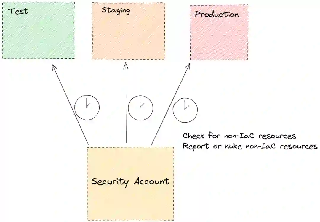 从安全账号开始,我们可以在生产环境中应用 aws-nuke 一类的脚本,让环境非常接近不可变,直接杀死黑客塞进去的、未经 IaC 定义的资源。