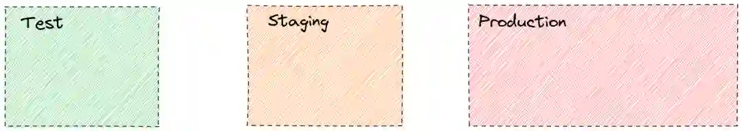 希望看到这里的你们真的有环境相关的策略,而不是搞什么“测试环境即开发环境”。对小公司来说,有测试到生产两个独立环境即可。大一些的公司就可以采用测试 ->暂存 ->生产流的策略。在本文中,我将以大公司的环境策略为例进行展示,但请记住,这个框架也不是一成不变的。